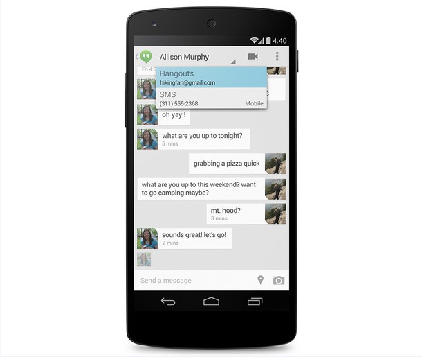 Google-ov Hangouts servis internet poruka vam sada omogućava da pošaljete SMS i MMS poruke sa njegovog interfejsa. Takođe možete postavljati GIF-ove, i koristiti ‘Autoawesome’ funkciju koje posvjetljava video chat sesiju sa Hangouts-om.